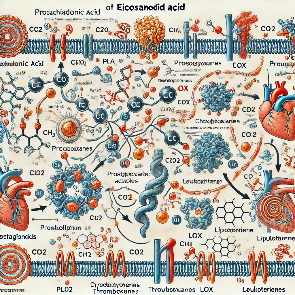 Eicosanoids are bioactive lipid molecules derived from 20-carbon (C20) polyunsaturated fatty acids, primarily arachidonic acid. These molecules play a crucial role in various physiological and pathological processes, particularly in inflammation, immune responses, and blood clotting.