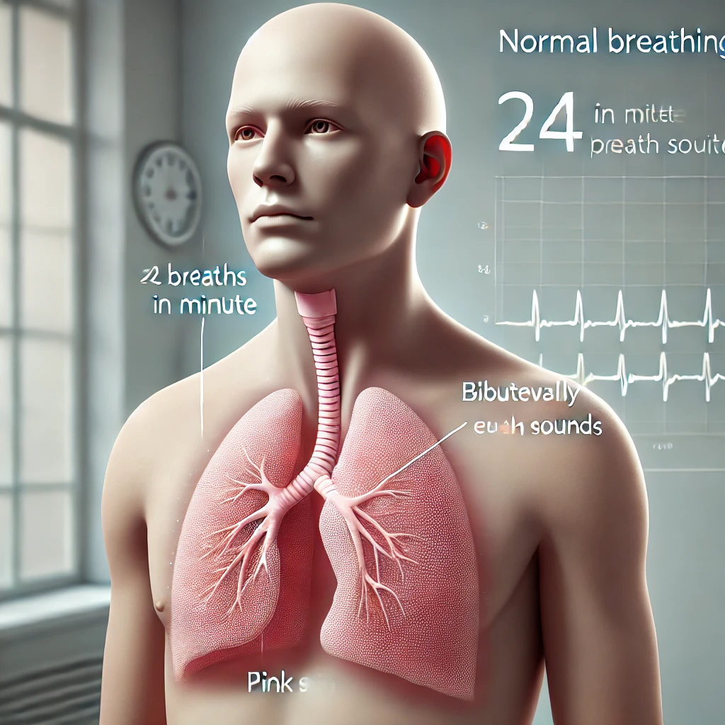 • Breath Sounds: Bilaterally equal breath sounds indicate that air is moving freely into both lungs, suggesting open airways and normal lung function.