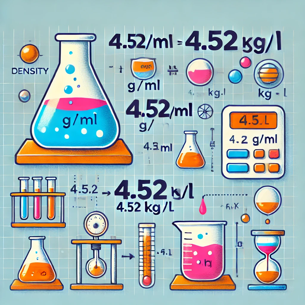 Density is a measure of how much mass is contained in a given volume, commonly expressed in units like g/mL or kg/L. Since 1 mL = 1 cm³, the conversion from grams per milliliter (g/mL) to kilograms per liter (kg/L) relies on simple metric conversions.