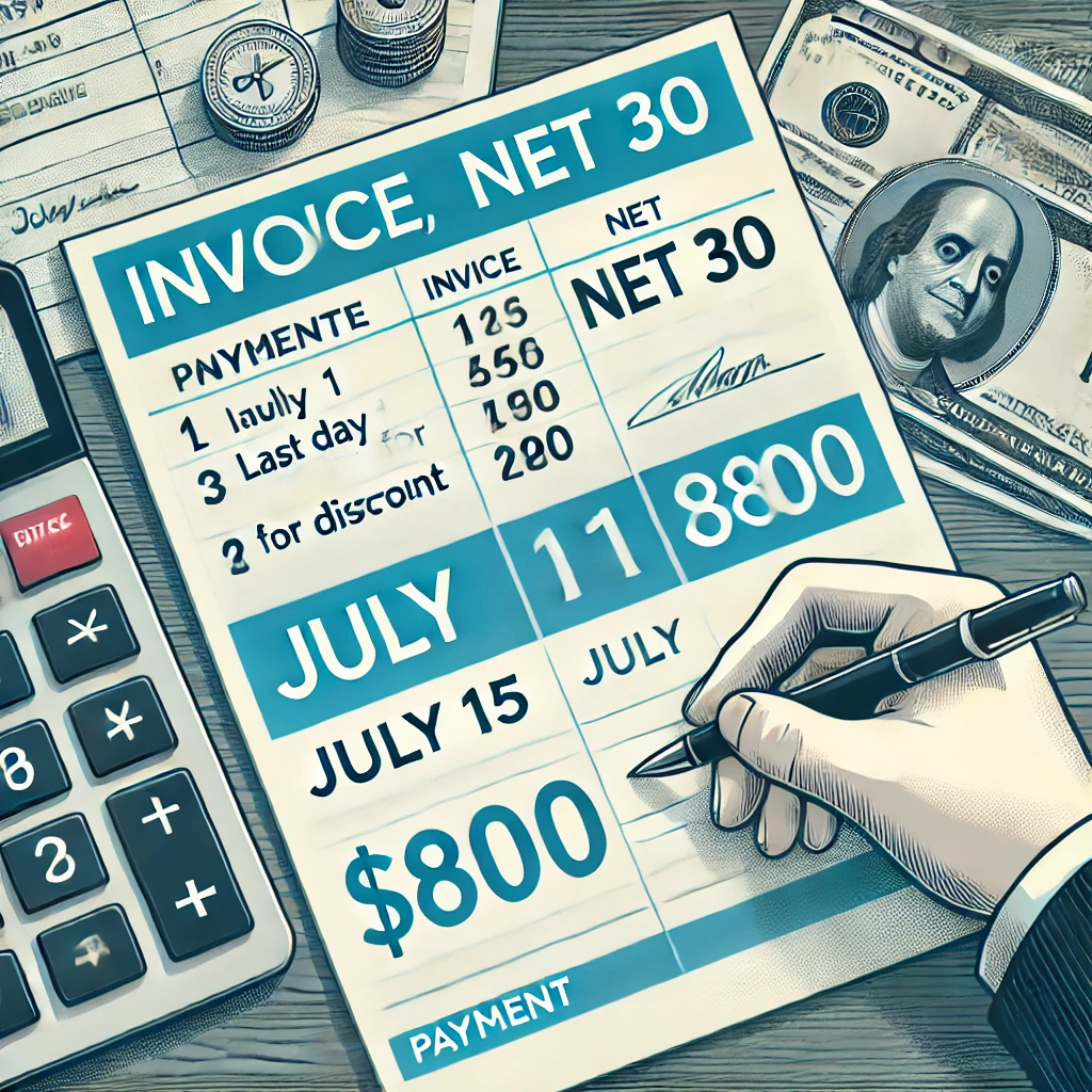 • If the company had paid before or on July 11, they would qualify for a 1% discount: Discount=800×0.01=8\text{Discount} = 800 \times 0.01 = 8 Discounted Price=800−8=792\text{Discounted Price} = 800 – 8 = 792