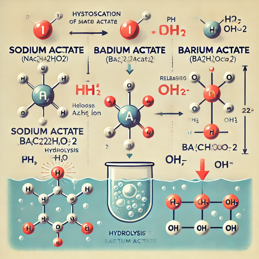 • Barium acetate (0.057 M) provides 0.057 × 2 = 0.114 M acetate ions.