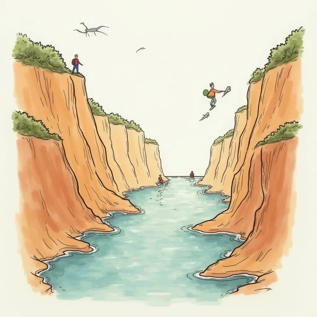 - There’s a landmark directly on the canyon floor between them.