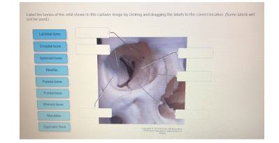 Label the bones of the orbit shown in this cadaver image by clicking and dragging the labels to the correct location. (Some labels will not be used.)