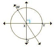 In the given image, we see a circle with center labeled X. There are four points on the circle labeled W, Y, Z, and X (center). Lines are drawn through these points.