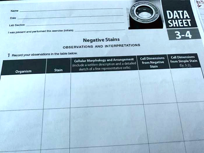 To help you complete the Data Sheet 3-4: Negative Stains section, here’s a sample set of entries and a detailed explanation: