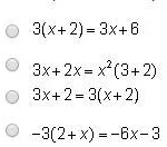 3(x+2)=3x+6 3x+2x=x^2(3+2) 3x+2=3(x+2) -3(2+x)=-6x-3