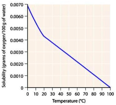 Solubility (grams of oxygen/100 g of water) 0.0070 0.0060 0.0050 0.0040 0.0030 0.0020 0.0010 0 0 10 20 30 40 50 60 70 80 90 100 Temperature (°C)