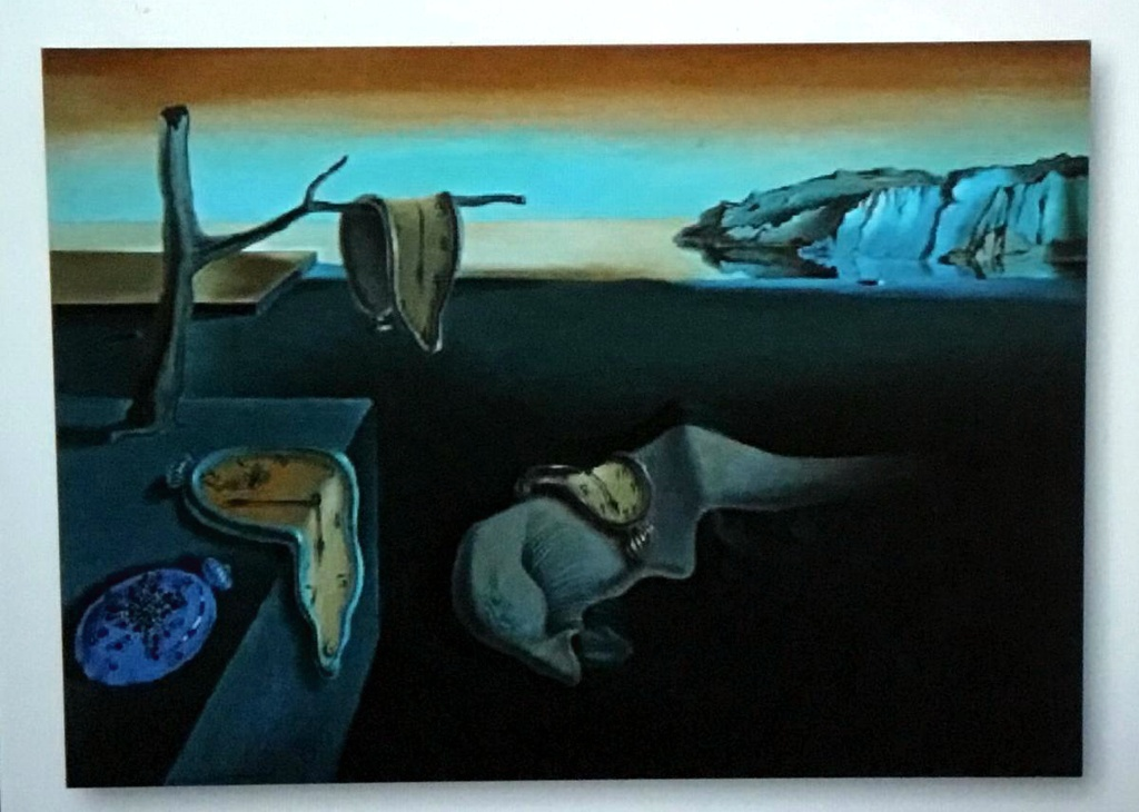 “The Persistence of Memory” explores the concept of time, memory, and decay. The painting’s most distinctive elements are the melting clocks, which drape limply over various surfaces, including a tree branch, a rectangular platform, and a strange organic figure often interpreted as a distorted self-portrait of Dalí. These melting clocks symbolize the fluidity and relativity of time, challenging the rigid, mechanical understanding of it. Inspired by Einstein’s theory of relativity, Dalí portrayed time as something subjective and distorted by experience, memory, and emotion.