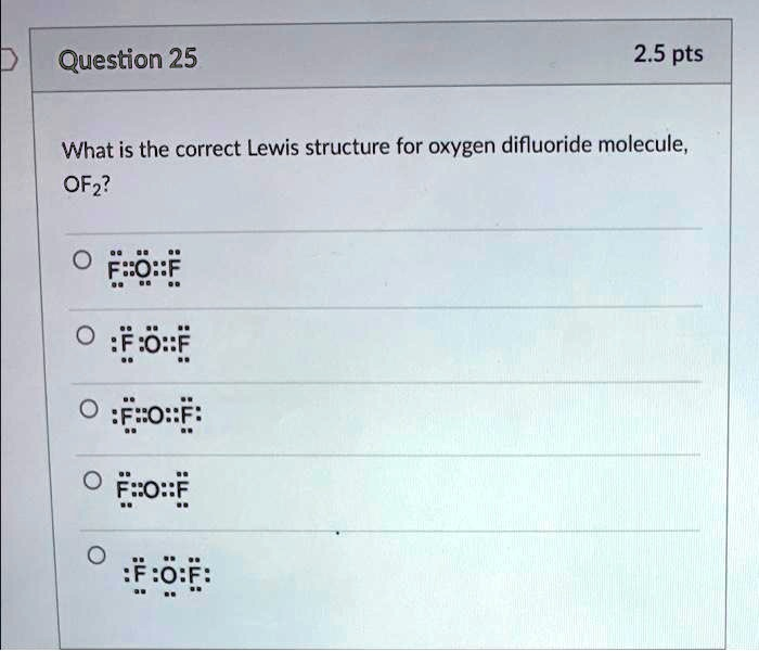 Question 25 2.5 pts What is the correct Lewis structure for oxygen difluoride molecule, OF