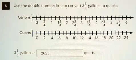 The problem asks us to convert 3143\frac{1}{4}341 gallons into quarts using the provided double number line. First, let’s understand the relationship between gallons and quarts: