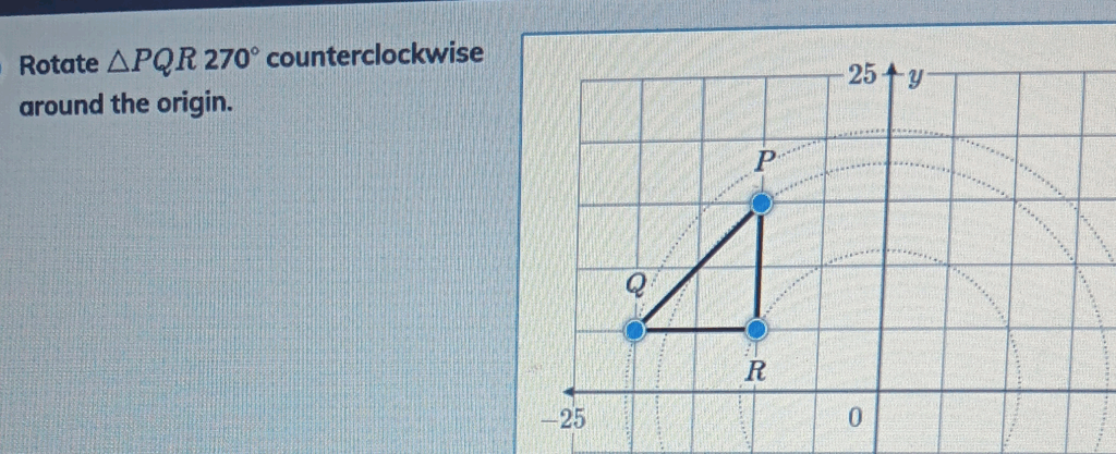 The objective is to rotate triangle PQR by 270 degrees counterclockwise around the origin (0, 0). A rotation is a rigid transformation, which means the size and shape of the triangle will be preserved; only its orientation and position will change. The process involves three main steps: identifying the original coordinates, applying the rotation rule, and determining the new coordinates.