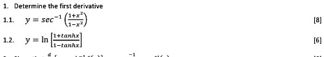 1.1. y = sec⁻¹((1+x²)/(1-x²))