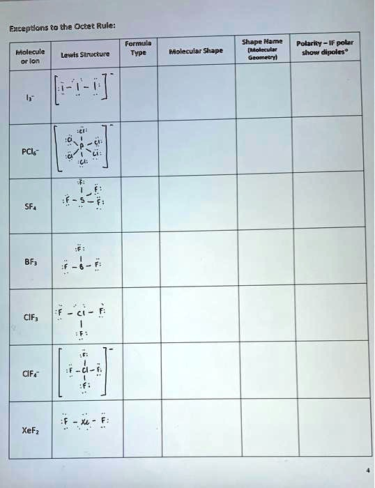 Completed Chemistry Worksheet: Exceptions to the Octet Rule