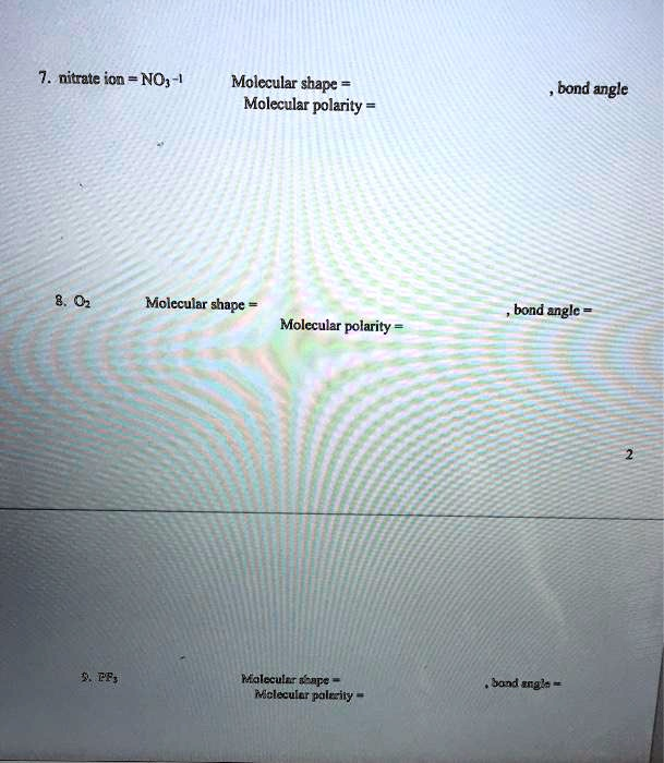Molecular shape = Molecular polarity = , bond angle 8.