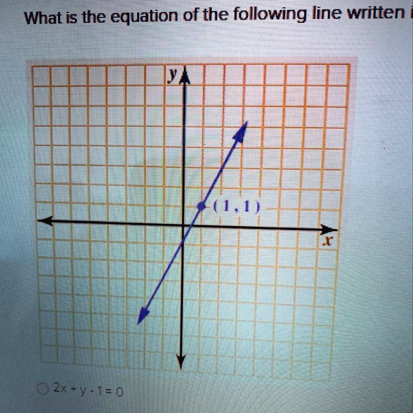 What is the equation of the following line written (1,1) 2x – y – 1 = 0