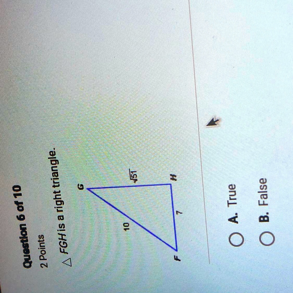 The sum of the squares of the two shorter sides (49 + 51) is exactly equal to the square of the longest side (100). Because this relationship holds true, the triangle satisfies the conditions of the converse of the Pythagorean theorem. Therefore, the statement that ΔFGH is a right triangle is correct. The right angle is at vertex H, which is opposite the longest side (the hypotenuse FG).