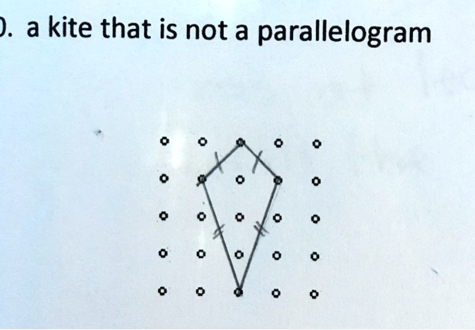 This figure matches the textbook geometric definition of a kite and simultaneously violates the conditions for a parallelogram. As such, it serves as a clear and accurate example of a kite that is not a parallelogram, showcasing the important distinctions between these two types of quadrilaterals.