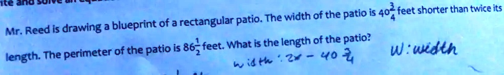 Mr. Reed is drawing a blueprint of a rectangular patio. The width of the patio is
