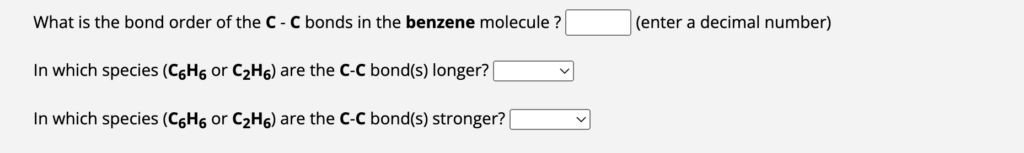 3. In which species (C₆H₆ or C₂H₆) are the C–C bonds stronger? C₆H₆