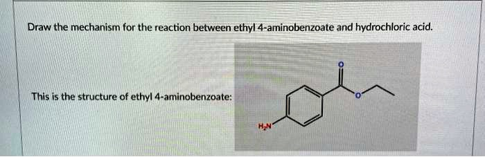 Here’s the mechanism for the reaction between ethyl 4-aminobenzoate and hydrochloric acid.
