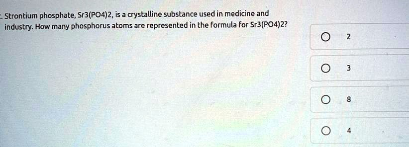 , is a crystalline substance used in medicine and industry. How many phosphorus atoms are represented in the formula for Sr