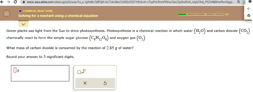 The problem states that water (H₂O) and carbon dioxide (CO₂) react to form glucose (C₆H₁₂O₆) and oxygen (O₂).