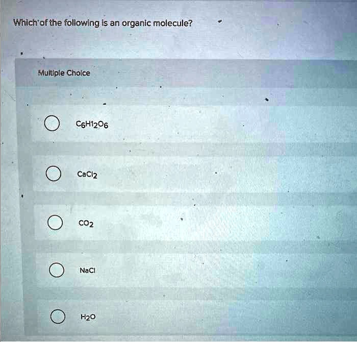 Which of the following is an organic molecule? Multiple Choice C