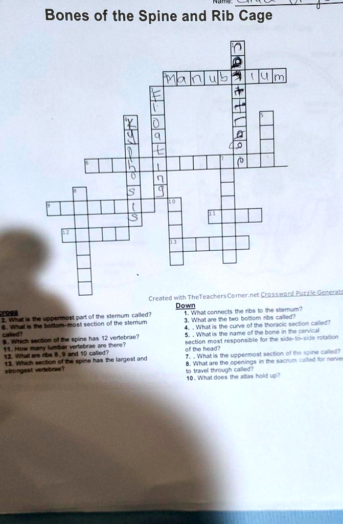 This crossword puzzle provides an excellent overview of the key bones and structures of the human spine and rib cage, which work together to provide protection, support, and mobility.