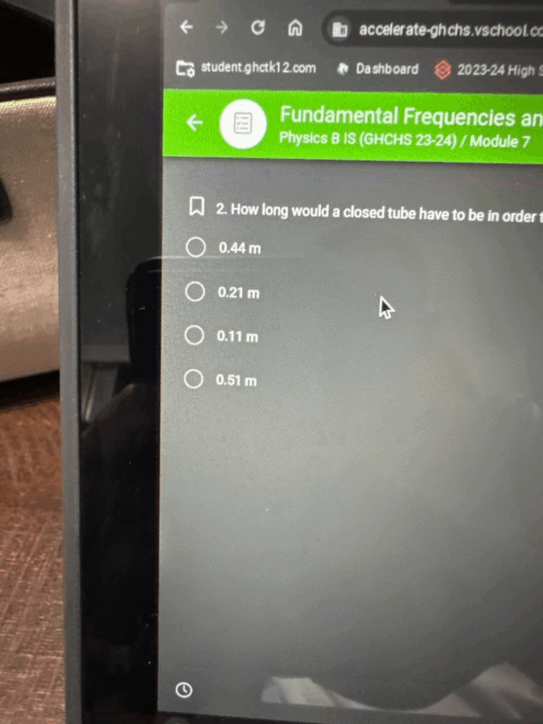 accelerate-ghchs.vschool c student.ghctk12.com Dashboard 2023-24 High Fundamental Frequencies an Physics B IS (GHCHS 23-24) / Module 7 2. How long would a closed tube have to be in order