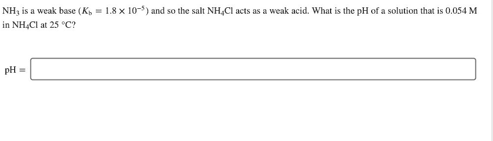 To determine the pH of the 0.054 M ammonium chloride (NH₄Cl) solution, we first need to understand the chemical reaction occurring in the water.