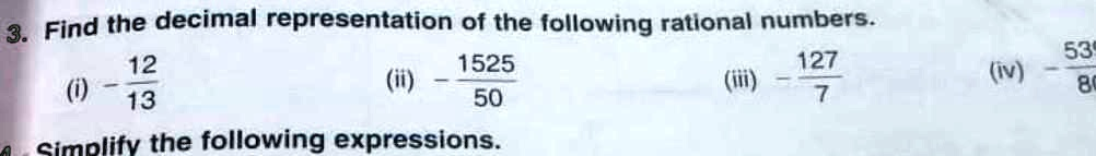 Of course, here are the decimal representations for the given rational numbers, along with a detailed explanation.