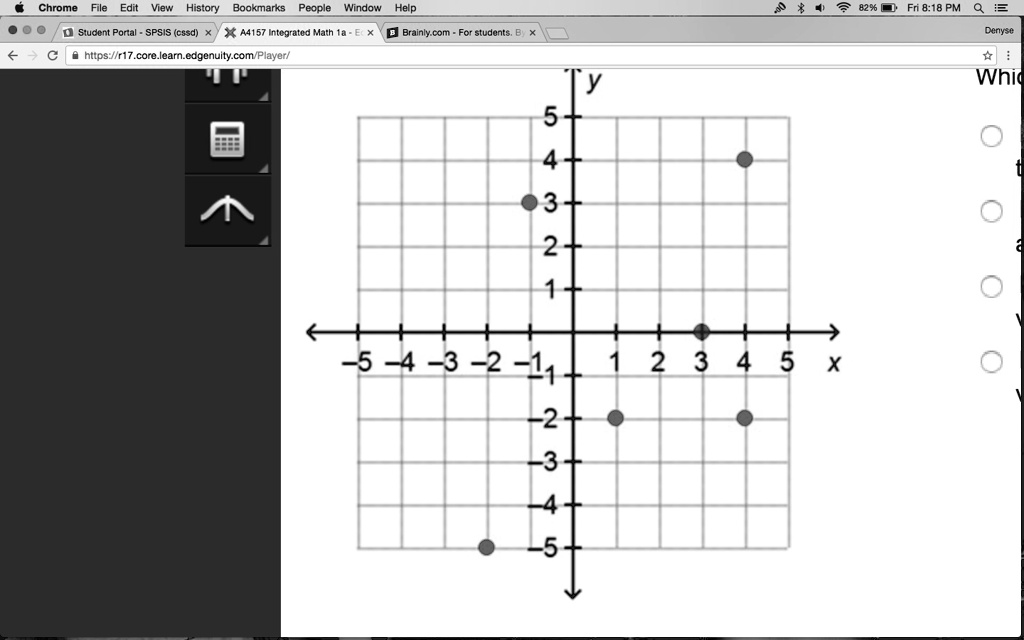 y 5 4 3 2 1 -5 -4 -3 -2 -1 1 2 3 4 5 x -2 -3 -4 -5 Which