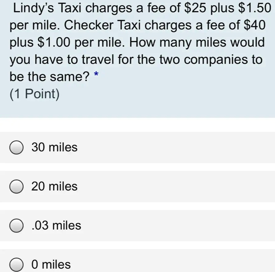 Lindy's Taxi charges a fee of 1.50 per mile