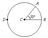 This answer is derived from the definition of a central angle in a circle. The provided image shows a circle with its center at point C. The lines extending from the center C to the points A and B on the circle’s edge are radii. The angle formed between these two radii at the center of the circle, ∠ACB, is called a central angle. The problem states that the measure of this central angle is 50°.