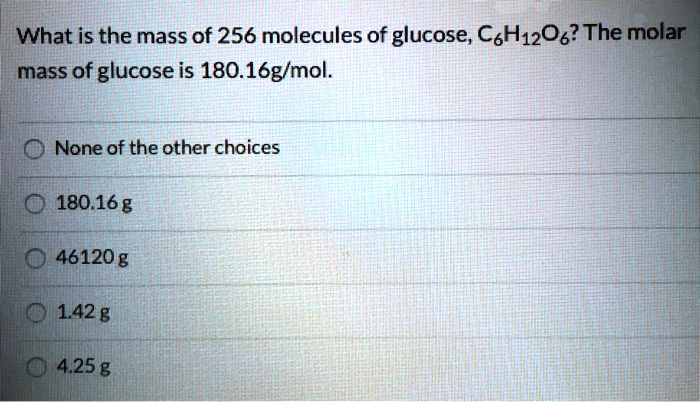 What is the mass of 256 molecules of glucose, C6 H12 O6