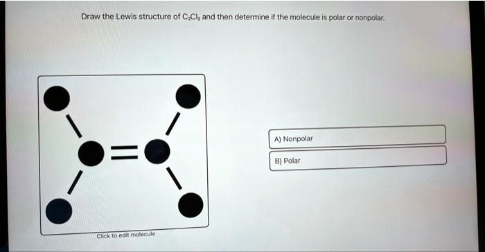Draw the Lewis structure of C?Cl?, and then determine if the molecule is polar or nonpolar. A) Nonpolar B) Polar