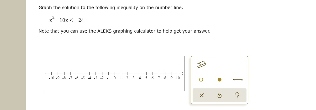 (-7)² + 10(-7) + 24 = 49 – 70 + 24 = 3. Since 3 is not less than 0, this interval is not a solution. - Test a value between -6 and -4 (e.g., x = -5):
