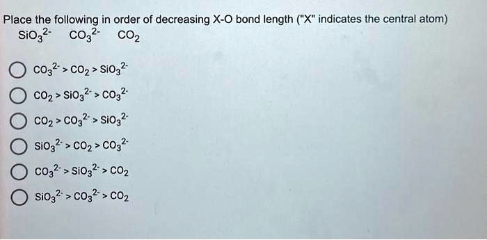 This gives the order: SiO₃²⁻ > CO₃²⁻ > CO₂.