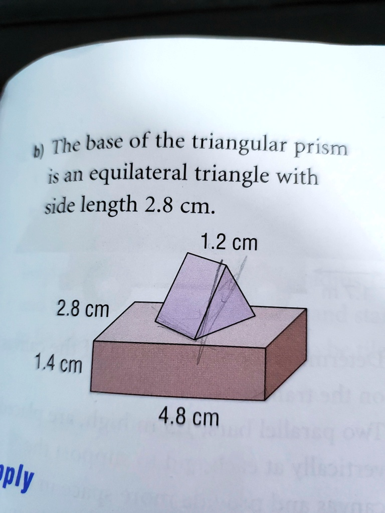 The base of the triangular prism is an equilateral triangle with side length 2.8 cm. 2.8 cm 1.4 cm 1.2 cm 4.8 cm