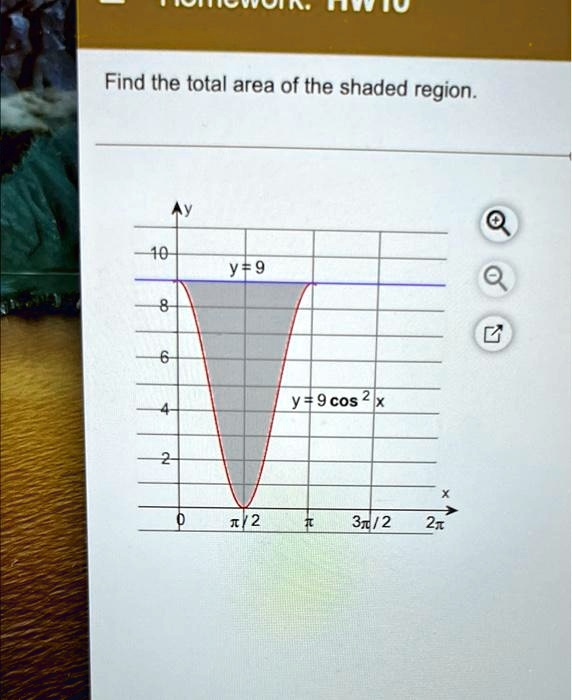 Find the total area of the shaded region. y = 9 y = 9 \cos^2 x