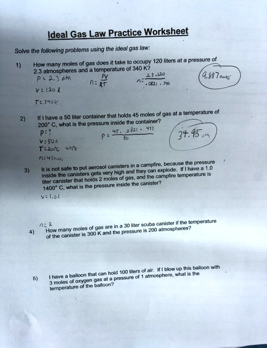 The power of the ideal gas law lies in its ability to find any one of the variables if the others are known. This is done by algebraically rearranging the formula. To find pressure (P) in problem 3, you use P = nRT / V. Plugging in the values gives P = (2 mol * 0.0821 L·atm/mol·K * 1673.15 K) / 1.0 L, which calculates to a very high pressure of 274.7 atm. Similarly, to find moles (n) in problem 4, the equation becomes n = PV / RT. For finding temperature (T) in problem 5, the formula is T = PV / nR. By correctly identifying the known values, converting units as needed, and substituting them into the rearranged formula, you can accurately determine the unknown quantity.