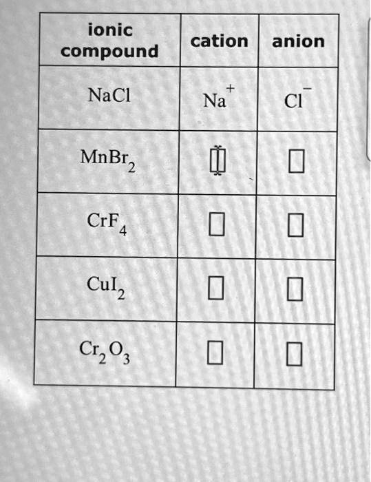 Here is the completed table with the correct cations and anions for each ionic compound.