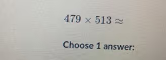 This estimation provides a quick and reasonably accurate answer. For comparison, the exact product of 479 × 513 is 245,727. Our estimate of 250,000 is very close to the actual result, making it a reliable approximation and the most likely correct choice among the unlisted answers.