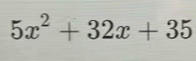 The image displays the mathematical expression: 5x² + 32x + 35.