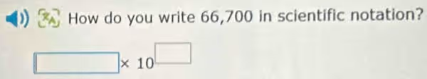 Scientific notation is a standard way to write very large or very small numbers concisely. The format is always a number between 1 and 10, called the coefficient, multiplied by a power of 10. To convert the number 66,700 into this format, we follow a two-step process.