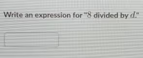 Therefore, the expression for “8 divided by d” is written as: