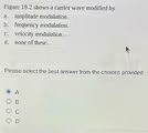 The term “velocity modulation” is less common in this context and typically relates to changing the speed of electrons in a beam, which is not a standard method for modifying radio waves. Therefore, if Figure 10-2 showed a wave with constant frequency but a varying height that traces the shape of another signal, it would be a clear depiction of amplitude modulation.