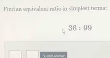 To find the simplest form of the ratio 36 : 99, the goal is to reduce both numbers to the smallest possible whole numbers while maintaining the same proportional relationship. This is achieved by finding the greatest common factor (GCF) of both 36 and 99. The GCF is the largest number that divides evenly into both numbers.