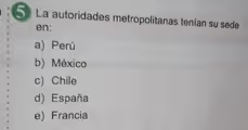 The term “autoridades metropolitanas” refers to the central governing bodies of the Spanish Empire, which were located in the metropolis, the mother country. During the colonial period of Latin America, from the 16th to the early 19th centuries, the metropolis that governed territories like Perú, México, and Chile was Spain. Therefore, the headquarters, or “sede,” of the supreme political power were situated in Spain.