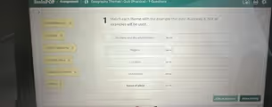 Based on the quiz shown in the image, here are the correct matches for the five themes of geography.